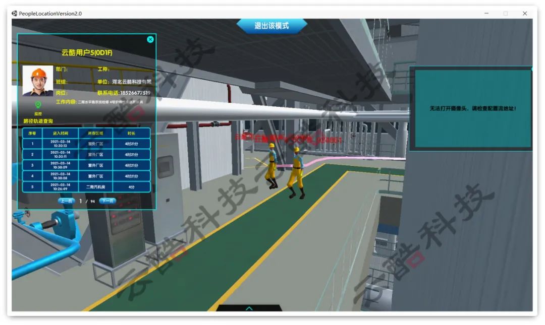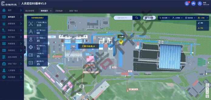 當作業人員攜帶電子標簽在現場作業時,系統后臺會實時解算人員位置并在二維/三維地圖上顯示。被定位的人員支持按人員類型分顏色顯示,按人員類型顯示和隱藏,并根據實時定位,具有區域人員統計、區域進出統計、身份識別等功能。